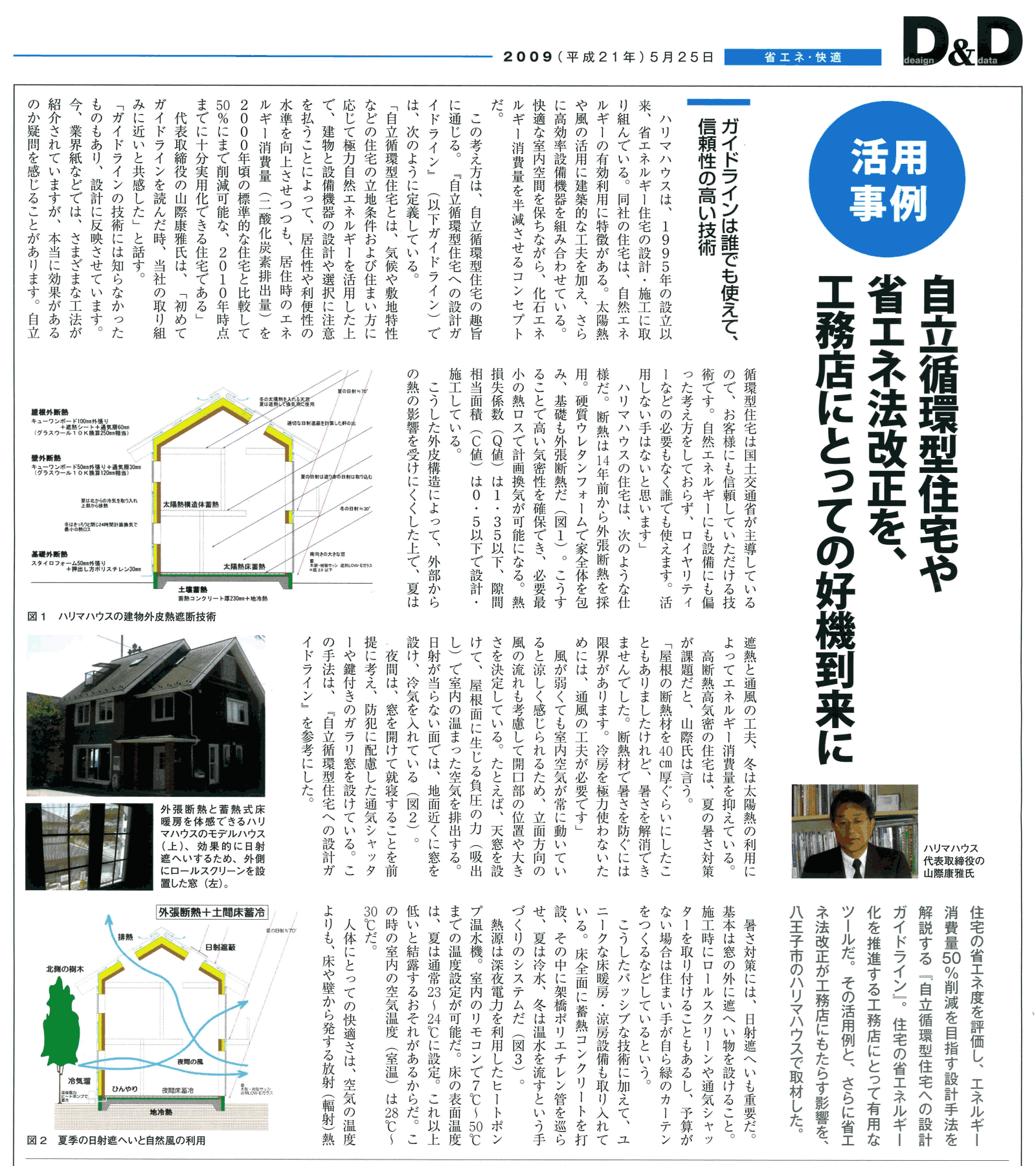09年5月25日 ハリマハウスの家が「自立循環型住宅」活用事例として日本住宅新聞「D&D」に掲載されました。