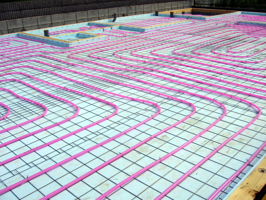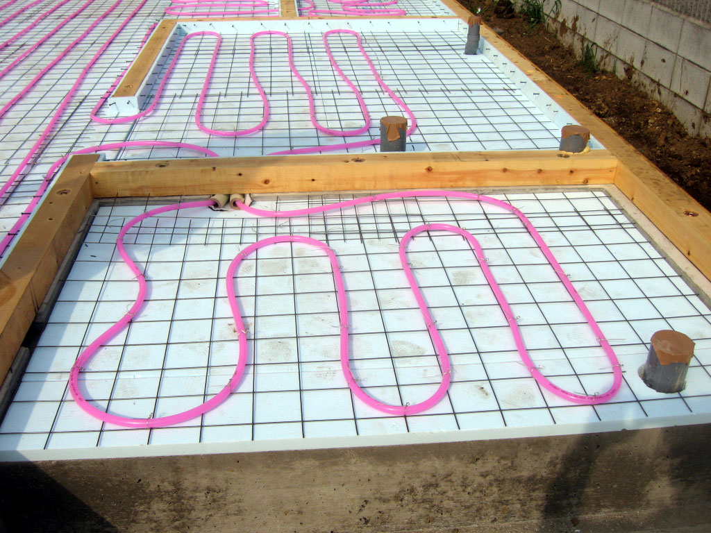 09.05.25 蓄熱式床暖房、床冷房の配管です。