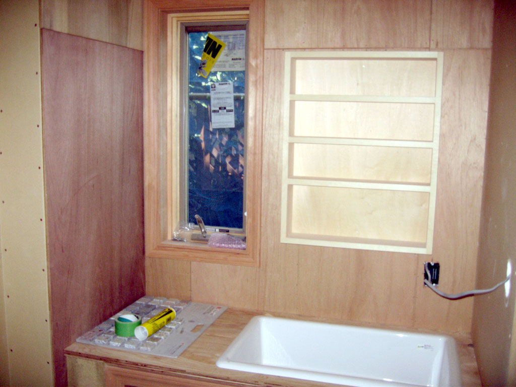 09.05.30 浴室の天井と壁に吉野檜(無節)を使いました。