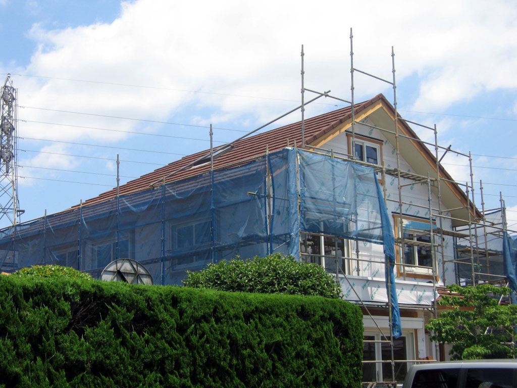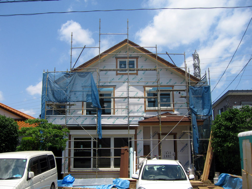 09,8,23 足場が取れました。軒天通気部材はイーヴスベンツ585を使用しました。