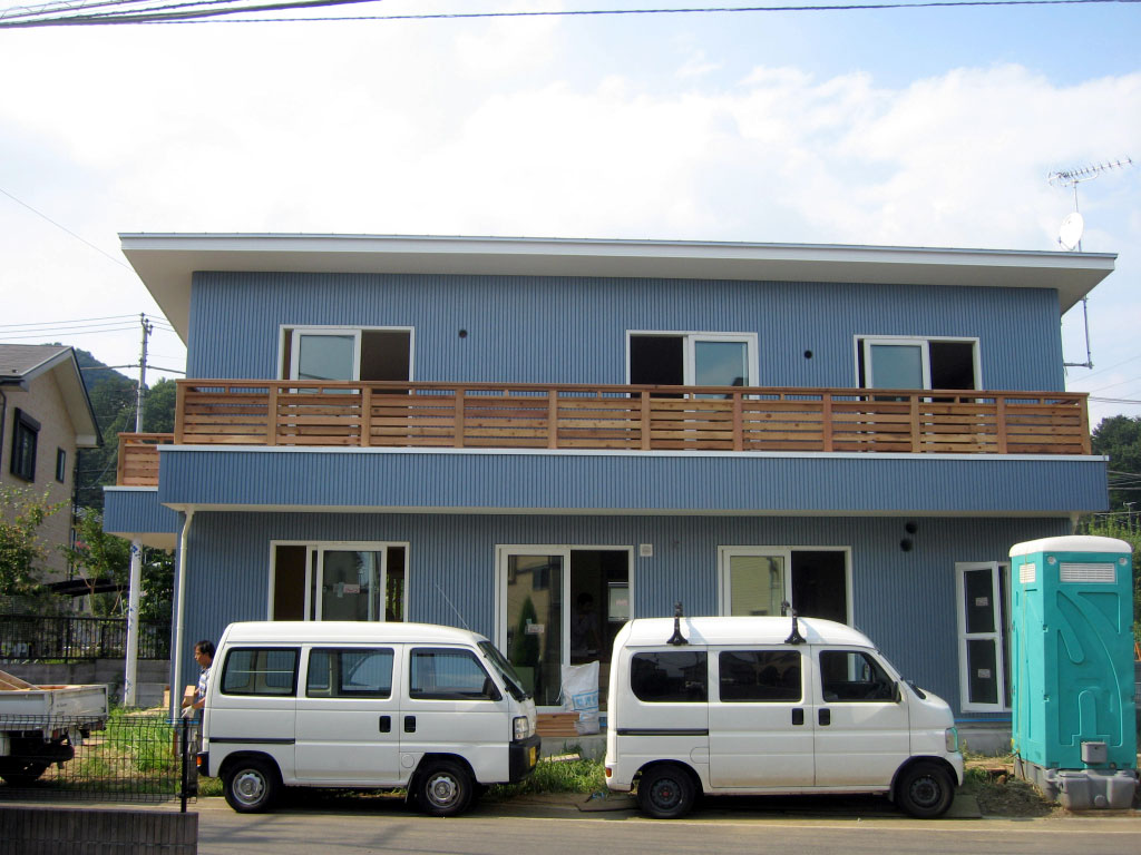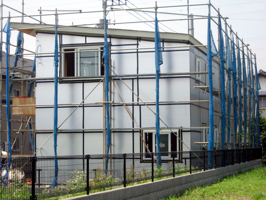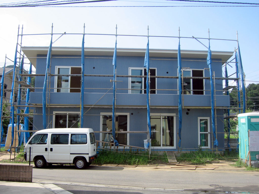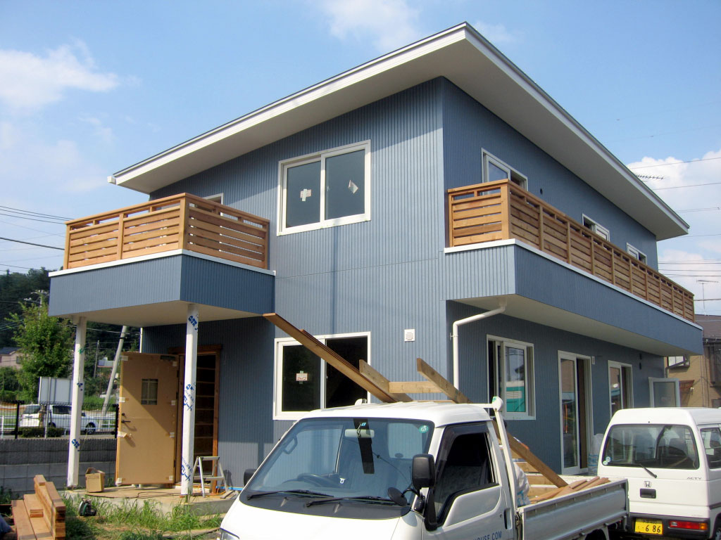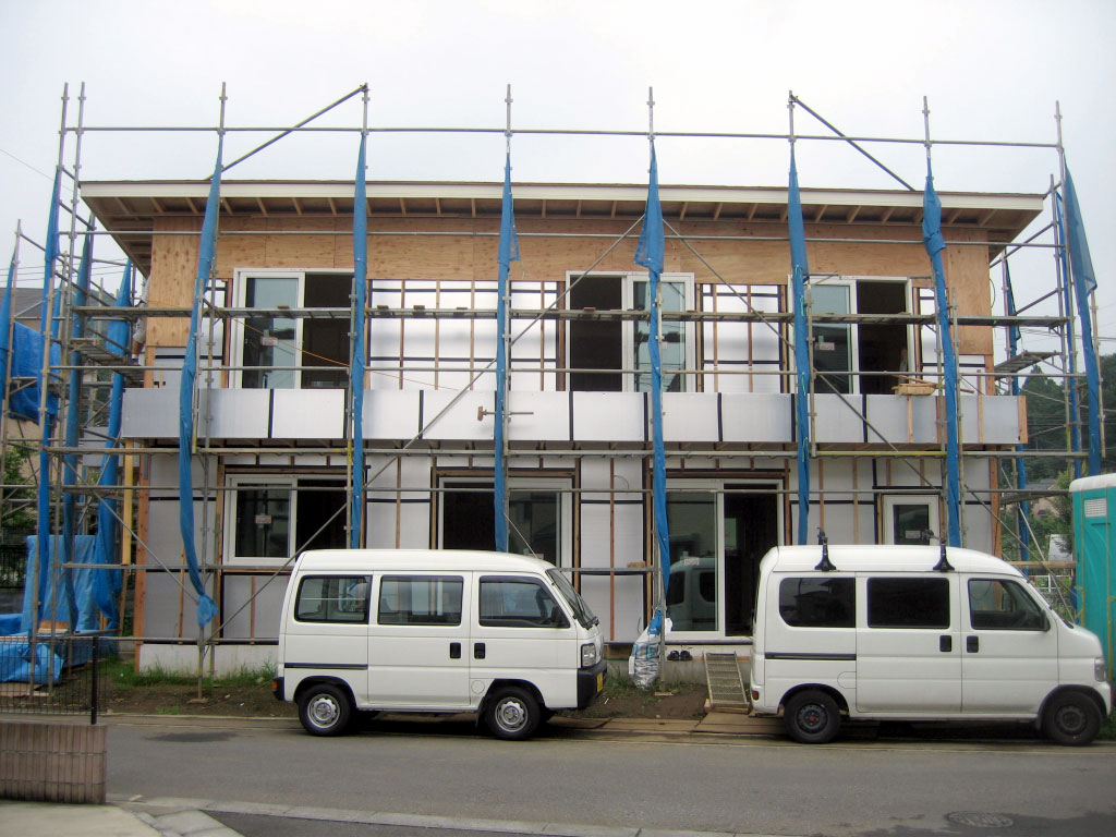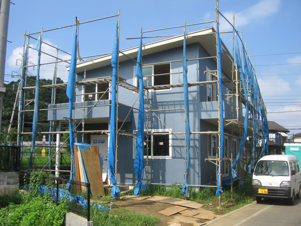 09,8,15 縦貼りサイディングが張り上がりました。9月末に完成見学会を行います。
