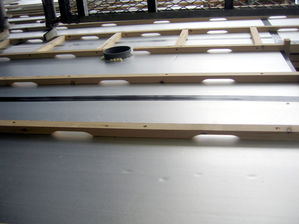 09,9,24 外壁材はアイジー工業ガルスパン15iの縦張りです。通気層を確保するため通気胴縁を手作りしました。